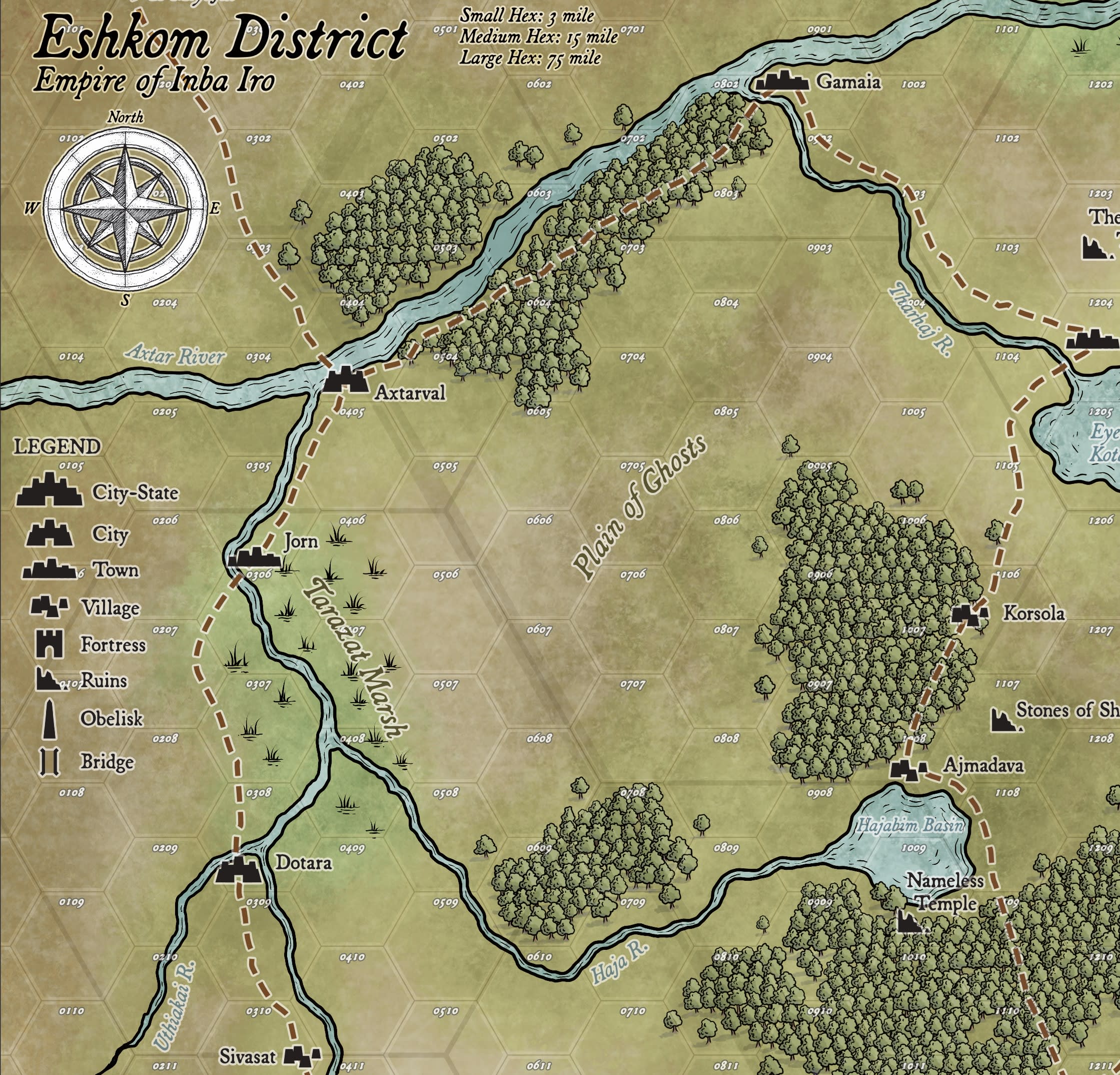 Governor’s Bluff is a fortified precinct atop the bluff that includes the Ashem’s Residence, an imperial garrison, and shrines to river gods both ancient and sanctioned. Outsiders require a writ to enter, because its view of the river fork is unmatched.